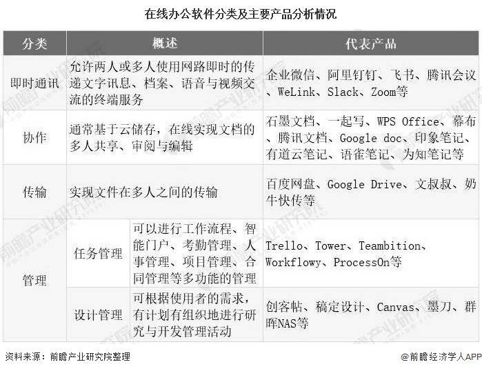 1、在线办公产品主要分为四大类