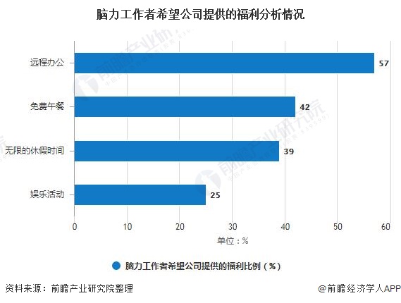 此外,根据全球性远程公司Zapier公布的一份关于远程办公的调查报告显示,人们对于远程办公的渴望相当之高。远程办公是57%的脑力工作者最希望公司提供给他们的福利,这个比例甚至超过了免费午餐(42%)和无限的休假时间(39%)。在这样的高需求下,远程办公的市场需求空间非常大。