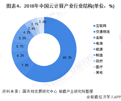 从行业角度来看,当前,中国云计算的主要用户集中在互联网、交通、物流、金融、电信、政府等领域,其中互联网行业占比达到60.3%。近年来,各行业的数据量激增,更多领域开始利用云计算技术挖掘数据价值,虽然互联网行业仍然是主导,但是交通物流、金融等行业的云计算规模也占据重要地位。