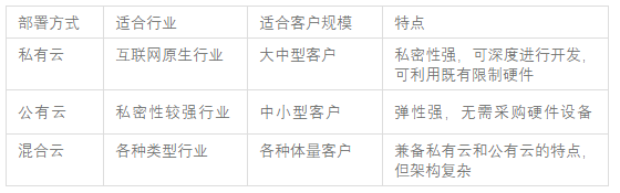 云计算根据部署方式的不同分为三种类型分别为私有云、公有云和混合云: