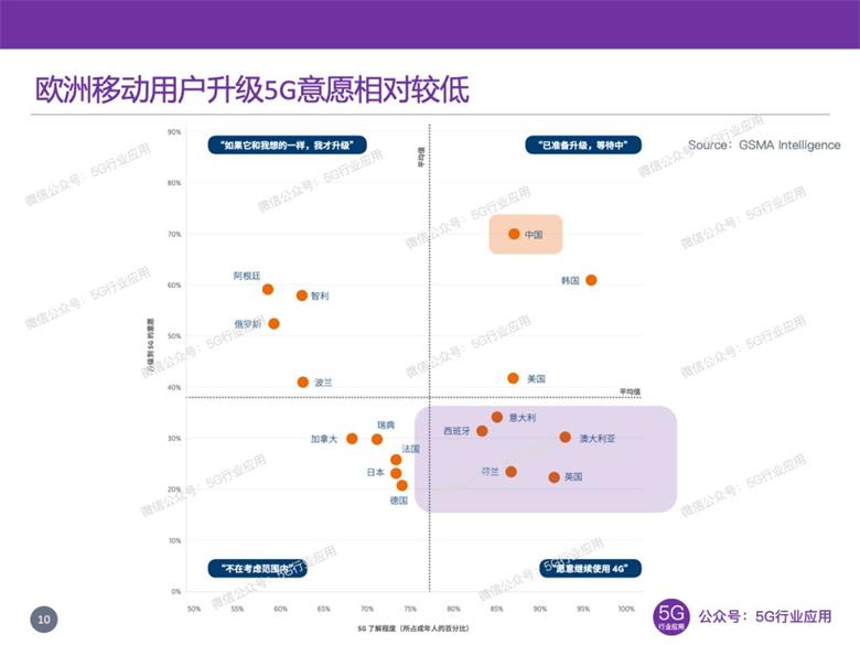第二,欧洲用户升级5G意愿明显更低。据GSMA调查显示,相比于中国、韩国的消费者,欧洲的消费者升级到5G的意图明显更低。