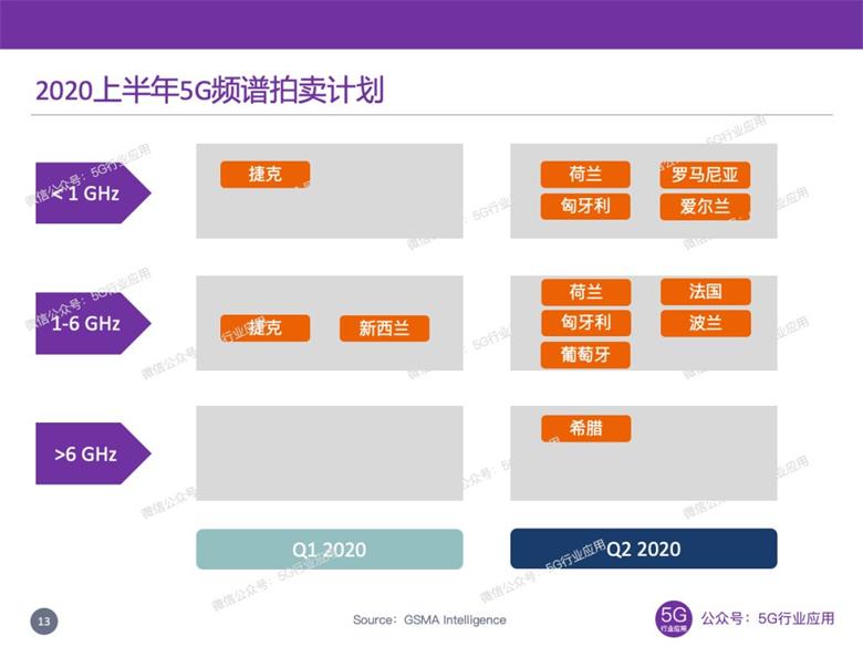 预计2020年欧洲的频谱拍卖将进一步加速。捷克、新西兰将在一季度进行频谱拍卖。荷兰、罗马尼亚、匈牙利、爱尔兰、葡萄牙、法国、波兰、希腊等国家也将在二季度进行频谱拍卖。