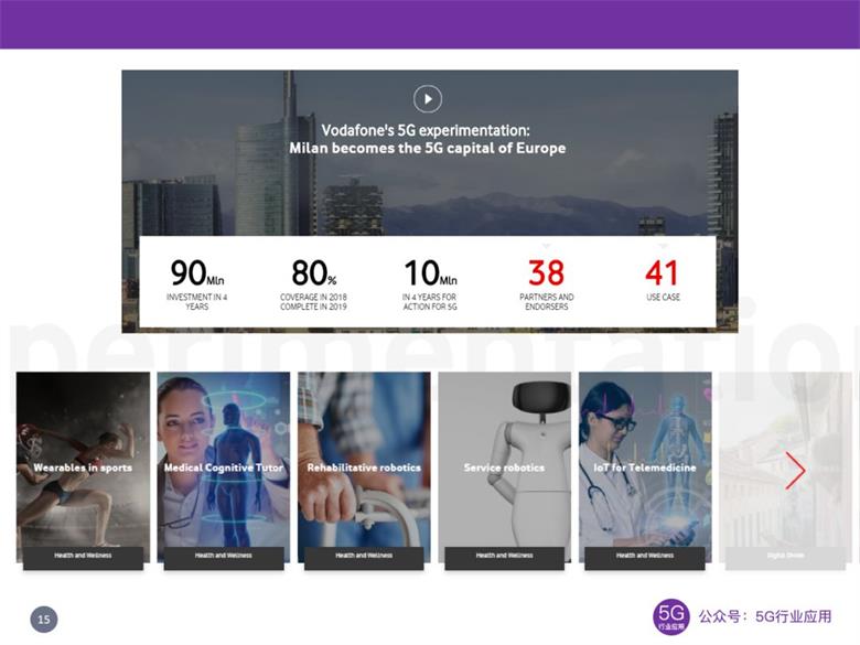 Vodafone一直以来积极利用同各行业伙伴来推动5G服务,在推出5G服务之前,就已经与38家工业和企业合作伙伴合作,涉及智能城市、校园网、健康、农业和娱乐等领域的41个项目。