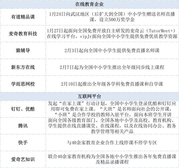 与此同时,新东方在线、学而思、猿辅导、好未来等在内的数十家知名在线教育机构,纷纷开始宣布向全国用户免费提供直播课程。