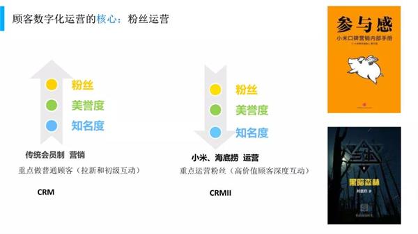 真正数字化运营的实质是运营粉丝,与高频次的高价值的粉丝互动。核心粉丝的简单定义是发烧友、成就感、意见领袖(KOL)、正能量传播、价值观相近, 能够参与产品设计,运营优化;核心粉丝会产生信任,往往是熟人和朋友,不仅仅是工业化的、冰冷的、商品买卖关系;关键时候是中流砥柱,核心粉丝不动摇。