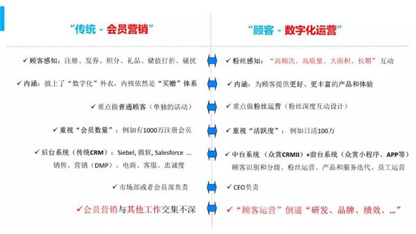 传统“会员营销”和顾客“数字化运营”的差异最后总结为:
