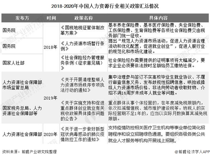 2019年人力资源社会保障部与市场监管总局开展清理整顿人力资源市场秩序专项执法行动,保障我国就业市场健康发展,进一步加强行业监管和标准化建设。