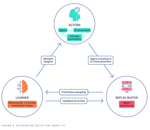Agent57通过让不同的计算机研究游戏的各个方面来克服了这些难题,然后将收集到的信息反馈给一个控制器,由控制器对所有这些因素进行分析以制定出最佳策略。