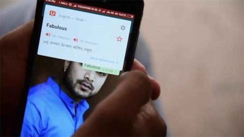 此时,这位名叫Rohit的男生走过来,拿出了手机,向他展示了手机里学英语的秘密武器——网易有道词典海外版U-Dictionary。