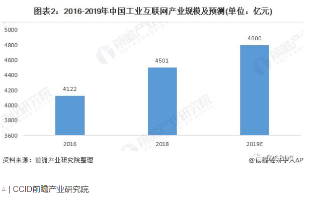 根据前瞻产业研究院数据统计所得,2018年全球工业互联网市场规模为8059.1亿美元,较2017年增长5.51%。初步估算2019年全球工业互联网市场规模约为8465.57亿美元。而2018年是我国工业互联网发展的元年,市场规模为4501亿元。据2019工业互联网峰会上工业和信息化部副部长陈肇雄引述的观点,2019年我国工业互联网产业市场规模达4800亿元,较2018年增长6.64%。不仅如此,我国从2017年年底开始,关于大力发展工业互联网的政策利好不断释放。因而在政策与市场双重驱动下,工业互联网将迎来重大利好发展期。