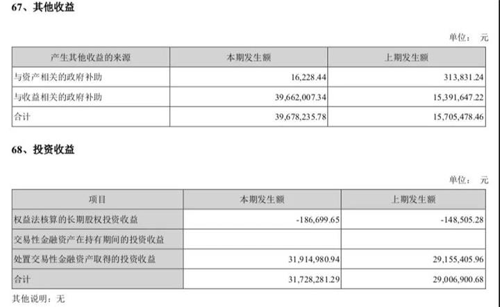 2019年报数据显示,扣非后亏损252万元。来自政府补助及投资收益高达高达7141万元。在年报风险中也提到,依靠税收优惠及政府补贴合计为3978万元,占2019年利润总额绝对值为67.64%,占比较大,存在业绩严重依赖税收优惠和政府补贴的风险。