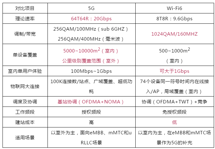从前面几个小节的对比可以看出,5G的应用是面向eMBB、mMTC和uRLLC场景的,以室外为主;Wi-Fi6的应用可以在eMBB和mMTC场景作为5G的补充,主要以室内为主。