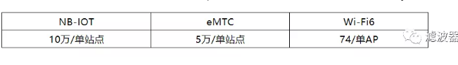 5G的mMTC场景,预期将使用NB-IOT和eMTC作为大连接的物理层空口技术,NB-IOT总共消耗带宽180KHZ,调制方式为BPSK、QPSK及GMSK,采用划分给GSM或LTE网络的频段部署,理想上下行速率为250kbps。eMTC载波带宽为1.4MHZ,物理层技术与LTE网络一致,部署于LTE网络的频段,理想上下行速率1Mbps。Wi-Fi6使用的OFDMA和TWT技术同样具备物联网场景的功能。在160MHZ带宽条件下,理论上允许74个设备接入,而160M带宽的速率为1200Mbps,平均分到每个设备的上下行速率可达16.2Mbps。