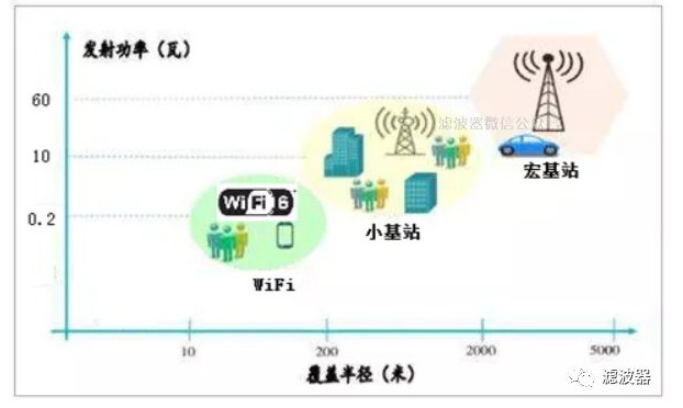 覆盖范围和发射功率强相关,一个室外5G基站发射功率可达60W,其覆盖是公里级的;在室内一般会采用小基站,为了降低覆盖成本其发射功率一般不超过10W,5G单个容量小区的覆盖范围在五千到一万平米、一到两层楼。Wi-Fi6 AP国家的认证要求发射功率不超过0.2W,可以覆盖一个大会议室或者一个大办公室的几个房间,覆盖范围约五百到一千平米。在室内,5G小基站的覆盖范围差不多是Wi-Fi6 AP的十倍。