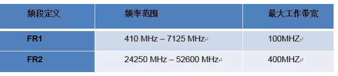 3GPP规定,5G新空口包括两大频谱范围分别为FR1和FR2。FR1最大信道带宽定义为100MHZ,FR2最大信道带宽定义为400MHZ。中高频段的宽阔频谱范围可定义更宽的信道带宽,从而提升系统容量和通信速率。