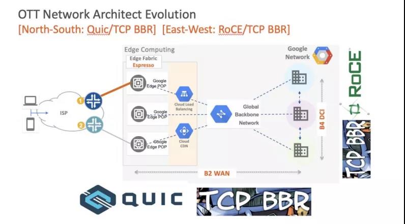 数据中心之间的大规模备份和都越来越多的采用TCP-BBR(Bottleneck Bandwidth and Round-trip propagation)拥塞控制算法来应对 Internet 丢包,提供 DC 之间高达几个Tbps的吞吐。在部署了TCP BRR之后,B4(Google DCI)网络性能提高了 2~20 倍。云公司,不光把TCP-BBR 用在自家数据中心互联,同时还提供给所有的云客户。比如客户在 Google GCP上创建VM,服务器侧自动采用最新的支持TCP BRR内核。着名的Amazon CloudFront,CloudFlare等公司也纷纷采用TCP BRR。