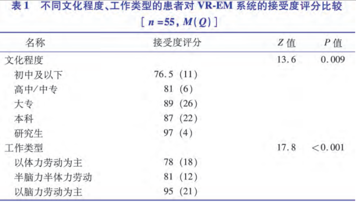 选取北京市某三级甲等医院RICU的55名患者为研究对象。纳入标准:①年龄≥18岁,因呼吸重症疾病转入RICU。②病情处于稳定期,即吸入氧浓度FiO2<0.6,PEEP<10cmH2O;超过2h未增加血管活性药物剂量;无活动性心肌缺血;无需药物治疗的心律失常。③镇静程度评估表(RichmondAgitationSedationScale,RASS)评分>-1分,交流正常,能够参与本调查。④已充分体验基于虚拟现实的早期主动肢体运动模式。排除标准:①有活动禁忌证(如不稳定骨折)的患者。②因各种原因不愿接受调查者。