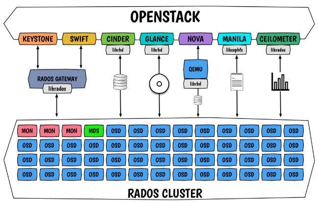 目前,市场上70%-80%的OpenStack云平台都在采用Ceph作为底层的存储平台。