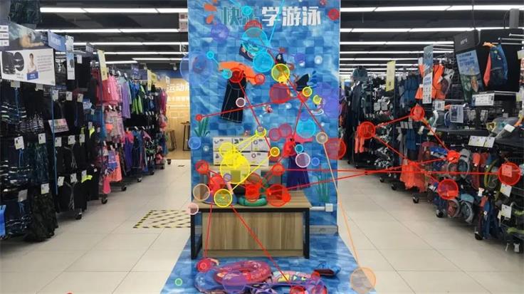 圆圈代表注视(半径越大,注视时间越长)线条代表眼跳