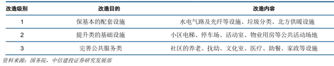 住建部目前初步将老旧小区改造的内容分为基本类、提升类及完善类,其中基本类的优先级较高。