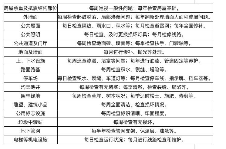 从上图可以看出,诸如“房屋承重及抗震结构部位”、“路面路基”等等保养检查完全可以采用传感器进行定期监测,并回传数据,分析数据得出结果。并且将大大提高保养效率和检修准确性。相信,在政府的推动下,旧改后的物业维护极有可能推动智慧小区设备维护的普及。
