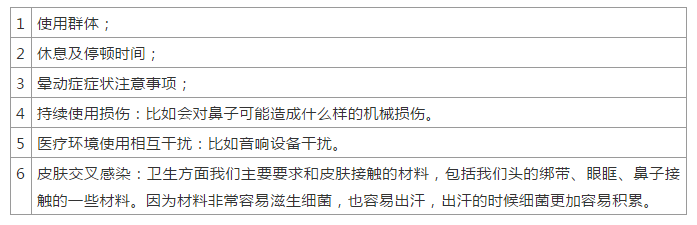 总的来说,目前在医疗环境当中对于VR-AR设备的性能以及它的安全没有专门的规范和标准,目前我们尝试用一些国际或者国内的标准规范对其进行一些检测和认证,并和大家分享我们现在对VR设备检测要求标准框架的六点要求: