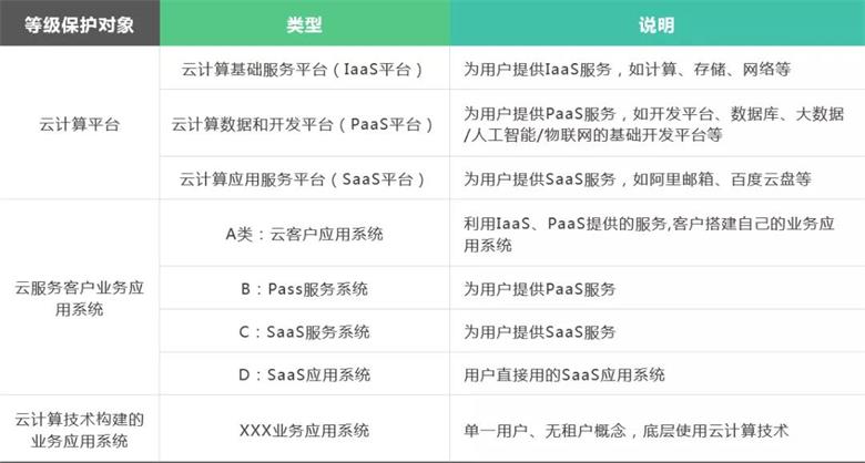 在云计算环境下,等级保护对象可分为三类:
