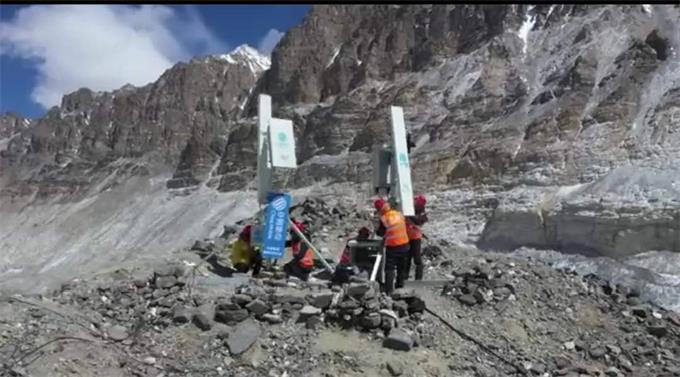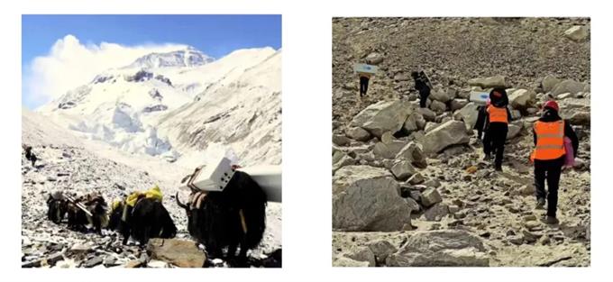 珠峰属于国家自然保护区,为了保护生态环境减少污染,在施工区域不可使用大型器械,所以整个建网过程,从物资搬运到进出场施工都是无法想象的步步艰辛。