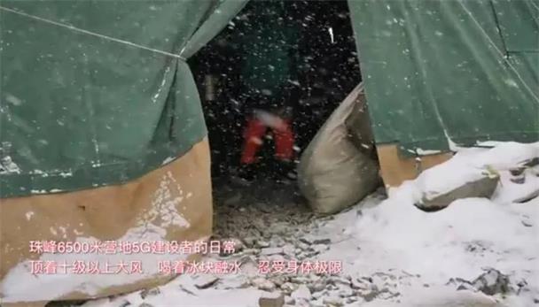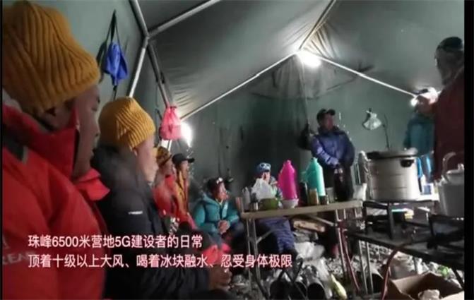 而且,从珠峰回传4K高清和VR信号,对于网络速度、设备稳定性以及通信人都是极大的考验,为了保障网络时刻畅通,为了不影响大家的观景体验,基站开通以后,网络维护优化人员还需要在海拔5300米以上的地方顶着十几级的大风,喝着冰块融化下来的冰水,坚持7x24小时昼夜不停地值守,其中的辛苦无法想象。