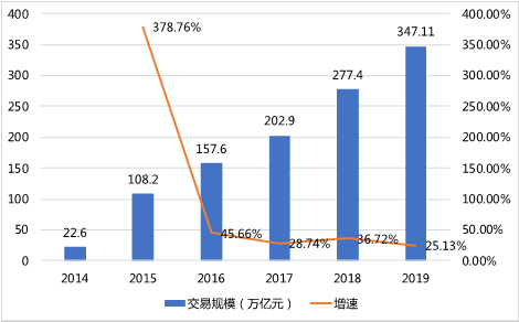 图1 2014-2019年中国移动支付交易规模(来源:中国清算支付协会)