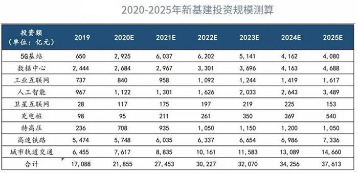 科尔尼管理咨询公司全球合伙人、大中华区物流供应链和数字化业务负责人宋旭军认为,“新基建”带动面广,具有巨大的经济拉动效应,能撬动广泛的上下游产业链环节,具有很强的“乘数效应”。“新基建”投资能推动涌现一系列新技术,激活大量的创新业态,创造更多就业机会。以5G为例,据中国信通院预测,预计2020至2025年,我国5G商用直接带动的经济总产出达10.6万亿元,间接拉动的经济总产出约24.8万亿元。根据广发证券对投资规模做的一个粗略估算,2020年七大领域“新基建”年内投资规模约1-1.2万亿。