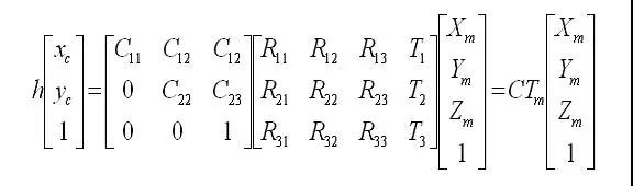 矩阵C的学名叫摄像机内参矩阵,矩阵Tm叫摄像机外参矩阵,其中内参矩阵是需要事先进行摄像机标定得到的,而外参矩阵是未知的,需要我们根据屏幕坐标(xc ,yc)和事先定义好的Marker 坐标系以及内参矩阵来估计Tm,然后绘制图形的时候根据Tm来绘制(初始估计的Tm不够精确,还需要使用非线性最小二乘进行迭代寻优),比如使用OpenGL绘制的时候就要在GL_MODELVIEW的模式下加载Tm矩阵来进行图形显示。