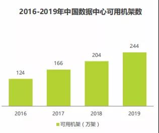 截至2017年年底,我国在用数据中心的机架总规模达到了166万架,与2016年年底相比,增长了33.4%。超大型数据中心规模达到28.3万架,大型数据中心机架规模达到54.5万架。2018年数据中心机架已经超过200万,规模以上数据中心机架占比上升。据统计,2019年我国数据中心机架总规模已达244万架。