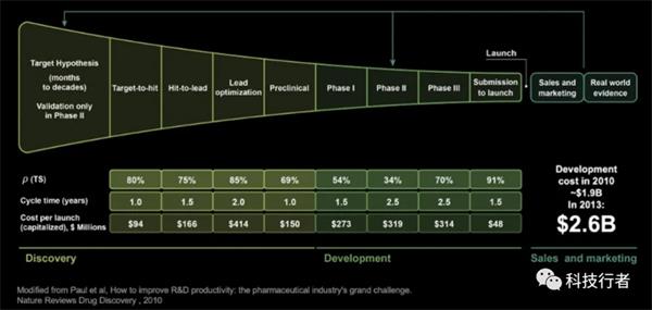 ▲药物发现和开发的各个阶段:基于2010年Paul及其他人的“如何提高研发生产率:制药行业的重大挑战”文章整理(图:Alex Zhavoronkov,Insilico Medicine)