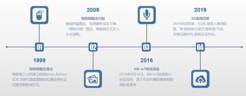 物联网作为一个年轻的概念,至今发展历程不过30年左右,但是全世界都对物联网有极高的重视。1990年物联网首次应用于可乐贩卖机上,用来监控可乐的数量以及冰冻情况,1999年MIT教授Kevin Ashton首次提出来物联网的概念,1995年比尔盖茨也在其所着的《未来之路》中提及物联网,但是并未引起广泛的关注,物联网真正受到广泛关注是在2000年后,在技术上的推进下,物联网取得了阶段性的成果,物联网总体性标准被确定,NB-IoT作为5G的重要应用场景以及传输协议也于2016年被冻结。