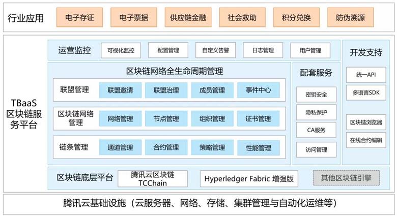 腾讯云区块链服务平台(TBaaS,Tencent Blockchain as a Service),是腾讯云为全行业客户提供的一站式区块链解决方案,致力于降低企业使用区块链的门槛,把区块链服务平台化。与此同时,腾讯云TBaaS积极探索“区块链+”的解决方案,总结区块链技术能够最先触及到的传统行业应用,并且总结为可复制的解决方案,通过TBaaS服务帮助企业第一时间实现并且落地相应场景,解决实际问题,加速区块链应用落地。