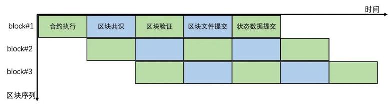 区块链的链式结构,使得多个区块也必须以串行的方式顺序化处理,极大限制了系统的并发性能,腾讯云区块链将区块处理过程以流水线的方式分解成多个阶段,如CPU密集型的签名验签、高网络IO的共识算法、磁盘IO为主的区块文件与KV数据库的读写等,每个阶段分配独立的工作线程进行处理。区块流水线在维持原有的区块的顺序的情况下,能极大的提升系统的交易吞吐率,单链条交易性能可达2万+ TPS。