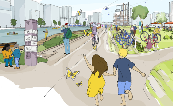 而在步道实验室的规划里,多伦多的这个智慧城市将兼具田园气息和技术感,城市里将会有充分的绿化,没有汽车和它们带来的烟尘、噪音,只有自行车和公共交通。另一方面,城市里遍布传感器,居民可以通过物流机器人和密集的公共网络电缆享受到高科技的生活服务,生活垃圾由地下管线自动回收分类再利用。