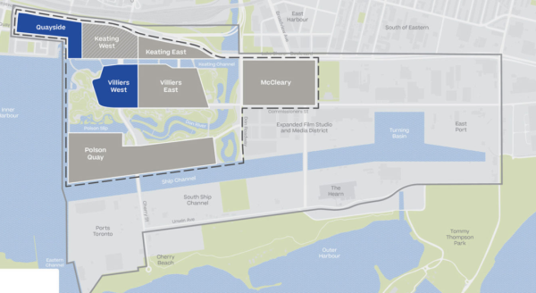 步道实验室当时计划在图中蓝色的Villiers West地区建设一个十几万平方米的科技园区,把谷歌加拿大搬进来