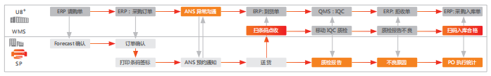 ●通过集成供应商门户实现采购订单、ASN、包装条码、与来料检验,订单执行对账与供应商协同,提高订单执行效率,提升供应商品质 管理,实现条码统一利用,节约成本。