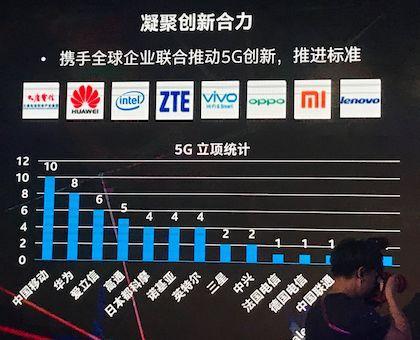 5G的立项,中国移动有10项,华为8项,中兴2项,联通1项;欧洲的爱立信6项,诺基亚4项,法国电信1项;美国高通5项,英特尔4项;日本的NTT DOCOMO 4项;三星2项。如果按照国家进行统计,中国有21项,美国9项,欧洲14项,日本4项,韩国2项。
