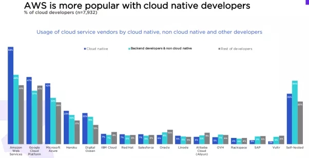 68%的云原生开发人员选择AWS作为云托管提供商。