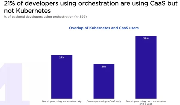 使用编排的开发人员中21%使用的是CaaS,而不是Kubernetes