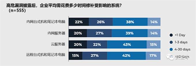 ·只有39%的人坚信其组织可以对严重和高危漏洞做出足够快速的响应,并成功进行补救。