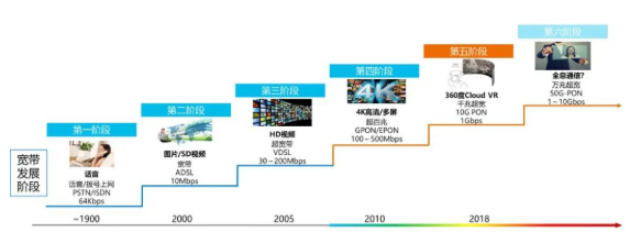 回顾家庭宽带的发展史,过去几十年来经历了4代发展,技术从拨号上网、DSL发展到GPON/EGPON时代,业务从图片、标清视频、高清视频发展到4K超高清和多屏时代,网速也从几十K提升到了几百兆,都是以业务需求驱动、以技术发展作为支撑的,两者精美结合,共同推动了家庭宽带体验不断提升。