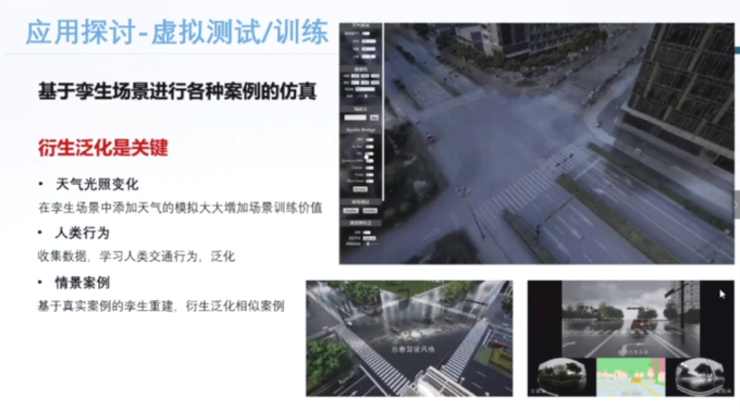目前,之江实验室融合智能研究中心正在开展智能无人驾驶虚拟训练系统研究,为无人车驾驶算法的道路驾驶安全性和智能驾驶能力提供开放型的虚拟测试与训练平台。该项目的目标是把现实交通场景在数字空间中复现,通过泛化衍生技术为无人车营造一些极端环境和临界的高危场景,大幅提升无人驾驶训练的效率。