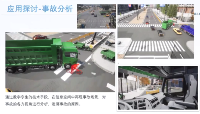 四是历史追溯和复盘研究。当一个事件发生了之后,我们可以利用数字孪生系统去还原这件交通事故发生的全过程,探究当时的每一步应对是否做得足够好,是否具备改进空间。这是数字孪生技术的一个特殊能力。