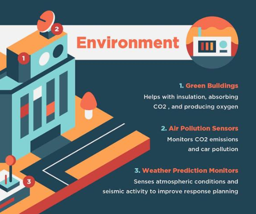 考虑到我们对可持续性和全球变暖的意识增强,智慧城市使用物联网来降低其碳足迹。从建筑物绿化到改善天气响应计划,城市可以监控其污染和二氧化碳水平。例如,北京通过追踪污染源(主要是建筑和交通)并相应地重定向这些源,将致命的空气污染物减少了20%。