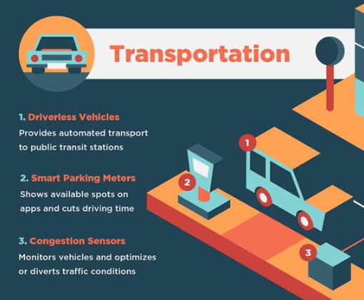 交通是城市中最普遍的问题之一。街道和高速公路上的拥堵不仅会导致事故,还会导致过量的二氧化碳排放。为了改善交通流量,智能城市正在实施一些功能,如拥堵传感器,以分流车辆;智能停车表,向驾驶员显示可用的停车位,并减少驾驶和空转时间。