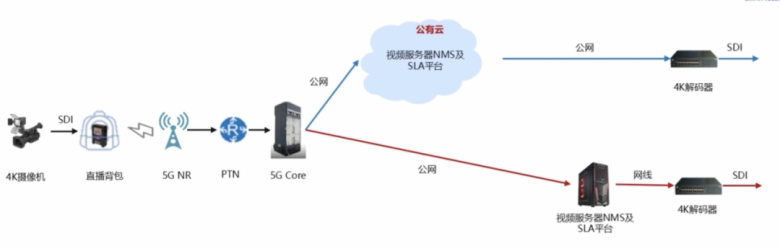 高骏介绍了5G无处不在的大带宽、低时延能力将推动媒体直播行业变革。在5G 4K直播下,4K摄像机采集的原始视频流进入直播背包等编码推流设备,编码后转换成IP数据流,通过内置的5G模组或外接的5G终端将视频数据转发给5G基站,再通过核心网直接传给电视台视频服务器,进行导播编辑、存储,并通过多种方式发给视频显示终端,从而使得直播方式更高效、便捷。